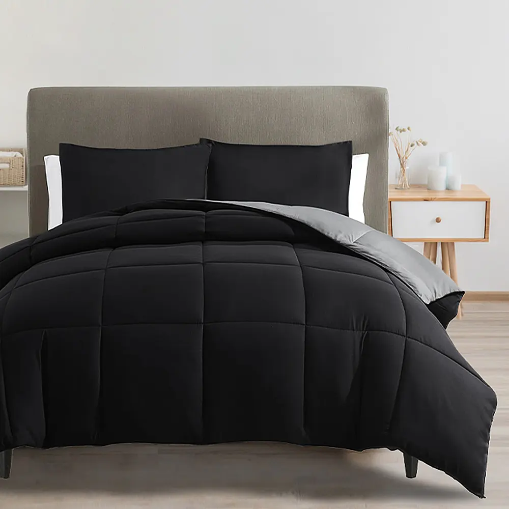 Grey & Black Microfiber Reversible Comforter in Double Size