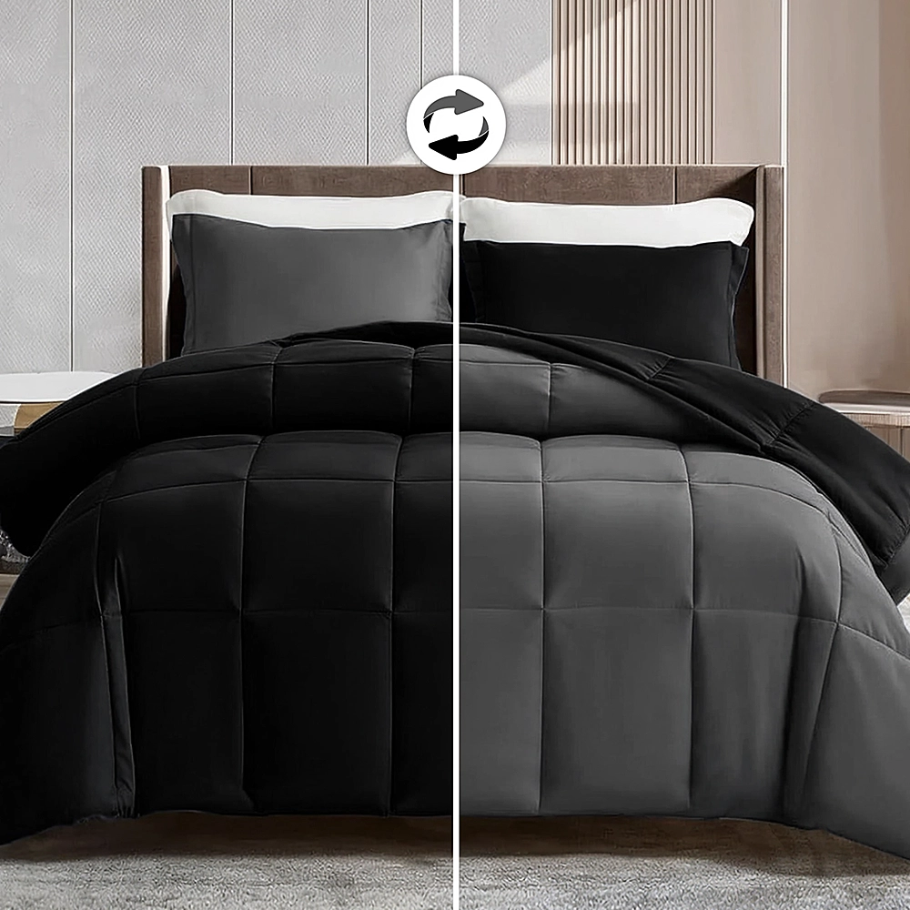 Grey & Black Microfiber Reversible Comforter in Twin Size