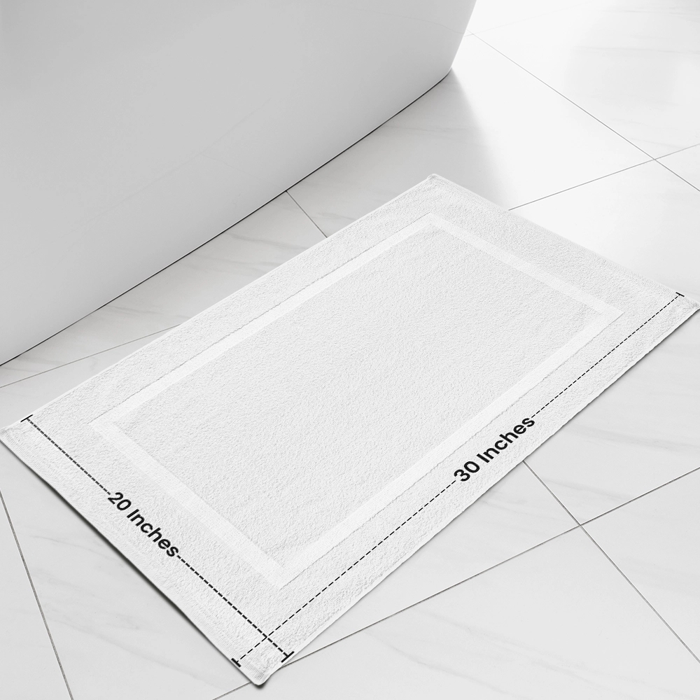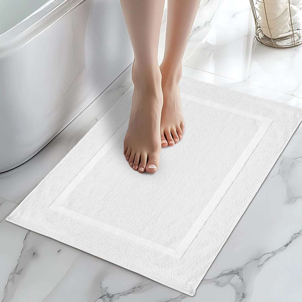 By utilizing institutional ring spun cotton yarn, these mats achieve a satisfactory level of absorption and provide consistent softness. The fabric is designed with a borderless full terry finish that creates a smooth, uniform texture across the entire surface.