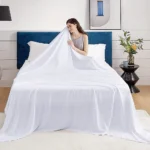 This white double bed sheet suits professional hospitality and healthcare interiors. It reflects cleanliness, hygiene, and a fresh appearance even in busy motels, clinics, and other commercial hospitality settings.