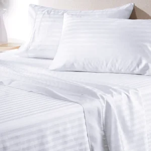 250 Threat Count Luxury Striped White Sheets Available in Flat & Fitted Variants with Elastic Skirts